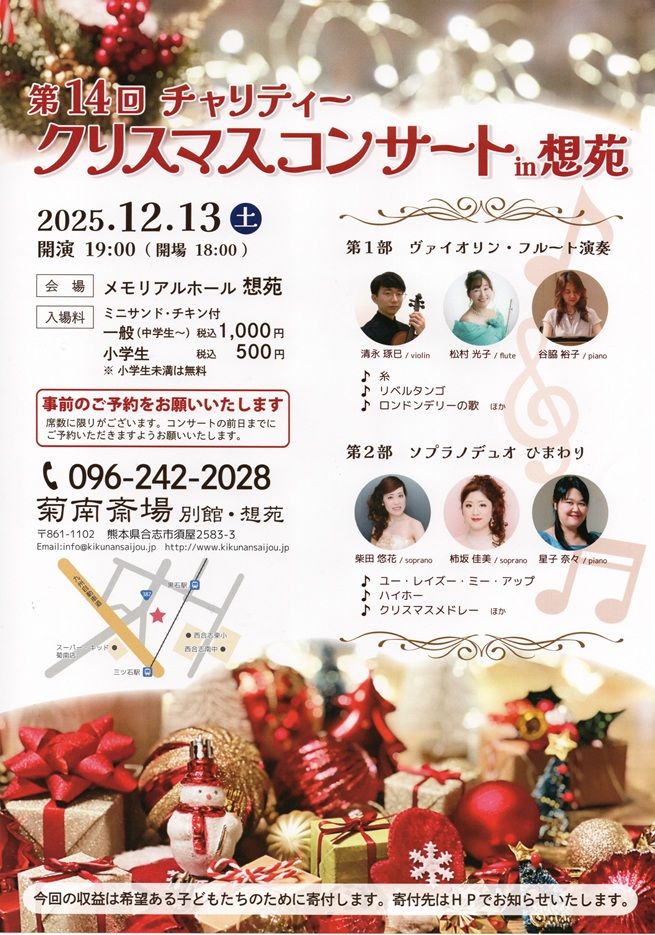 今週の土曜日『第14回クリスマスコンサート in 想苑』が行われます。